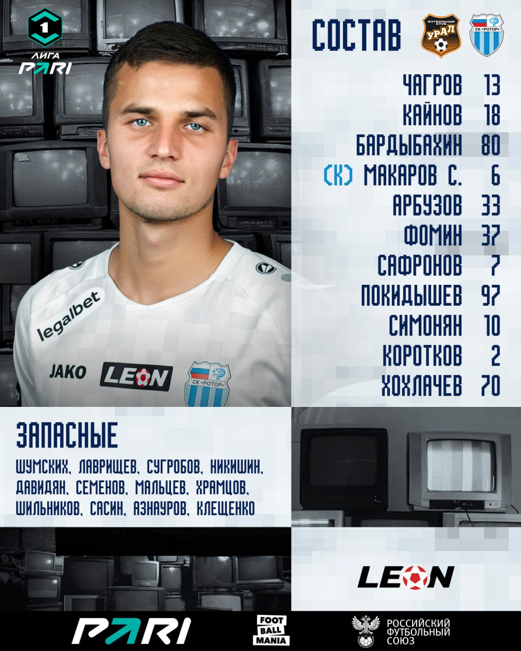 Состав «сине-голубых» на матч «Урал» — «Ротор»